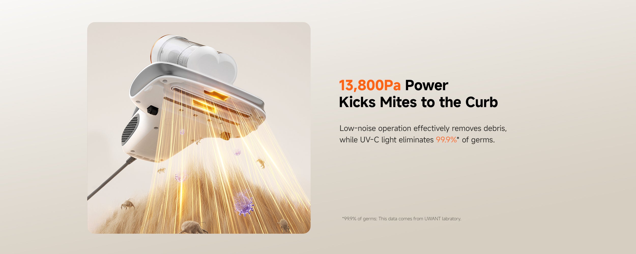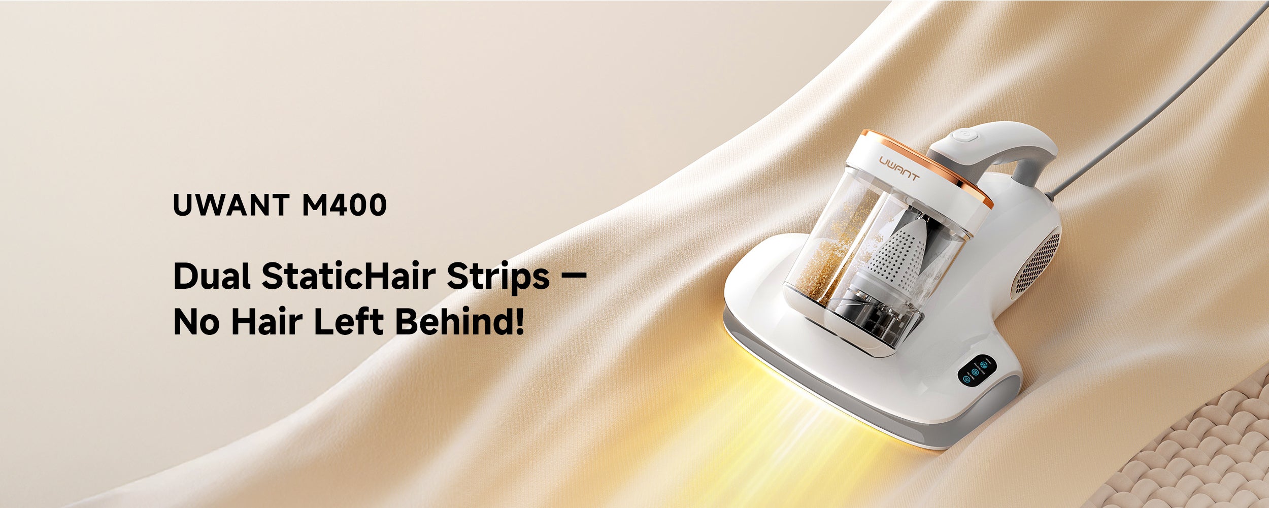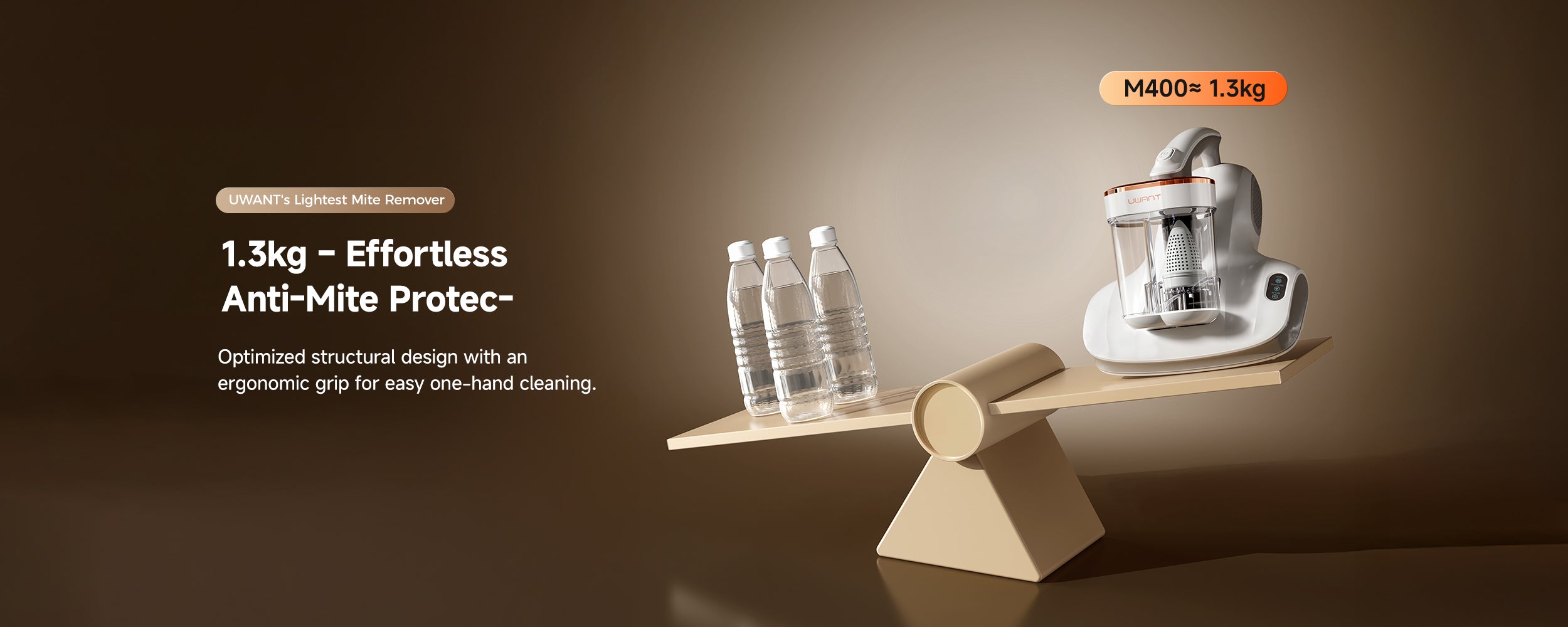 UWANT M400 is an ultra-light Mattress Vacuum designed for effortless, everyday cleaning. Weighing only 1.3kg, it is easy to carry, maneuver, and store, while delivering powerful suction and UV sterilization to remove dust mites, allergens, and hidden debris from mattresses, bedding, and upholstery. Compact yet effective, the M400 keeps your home clean and hygienic with minimal effort.