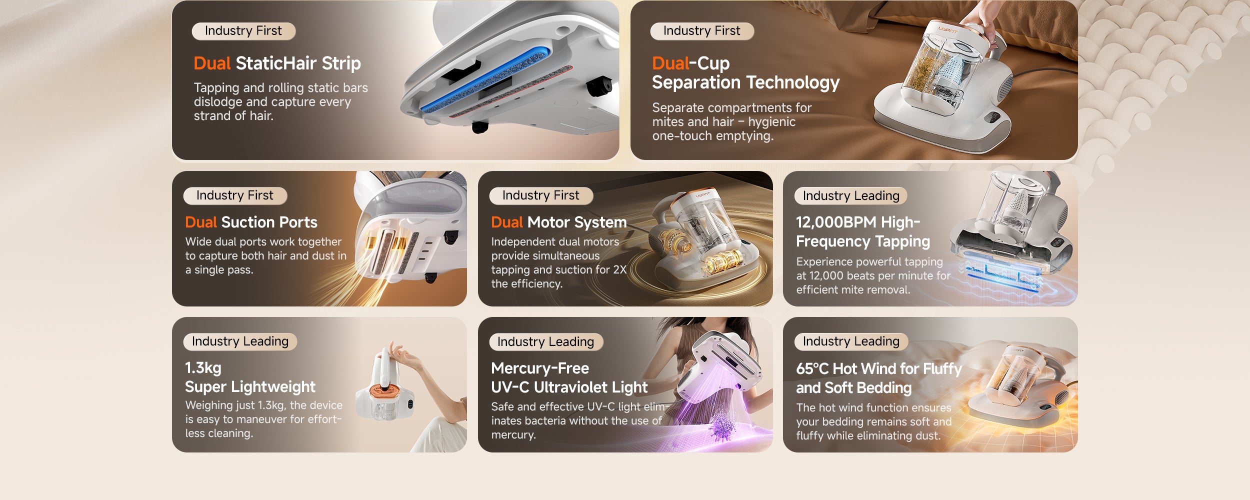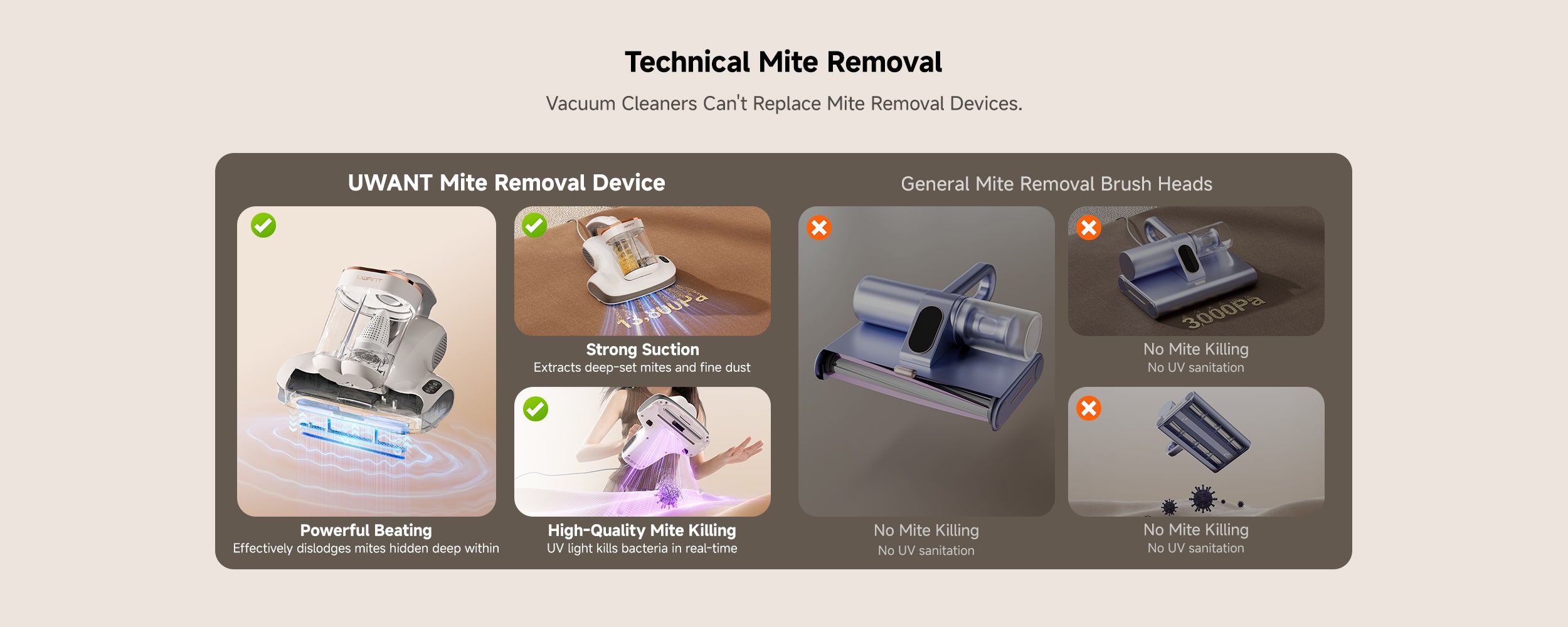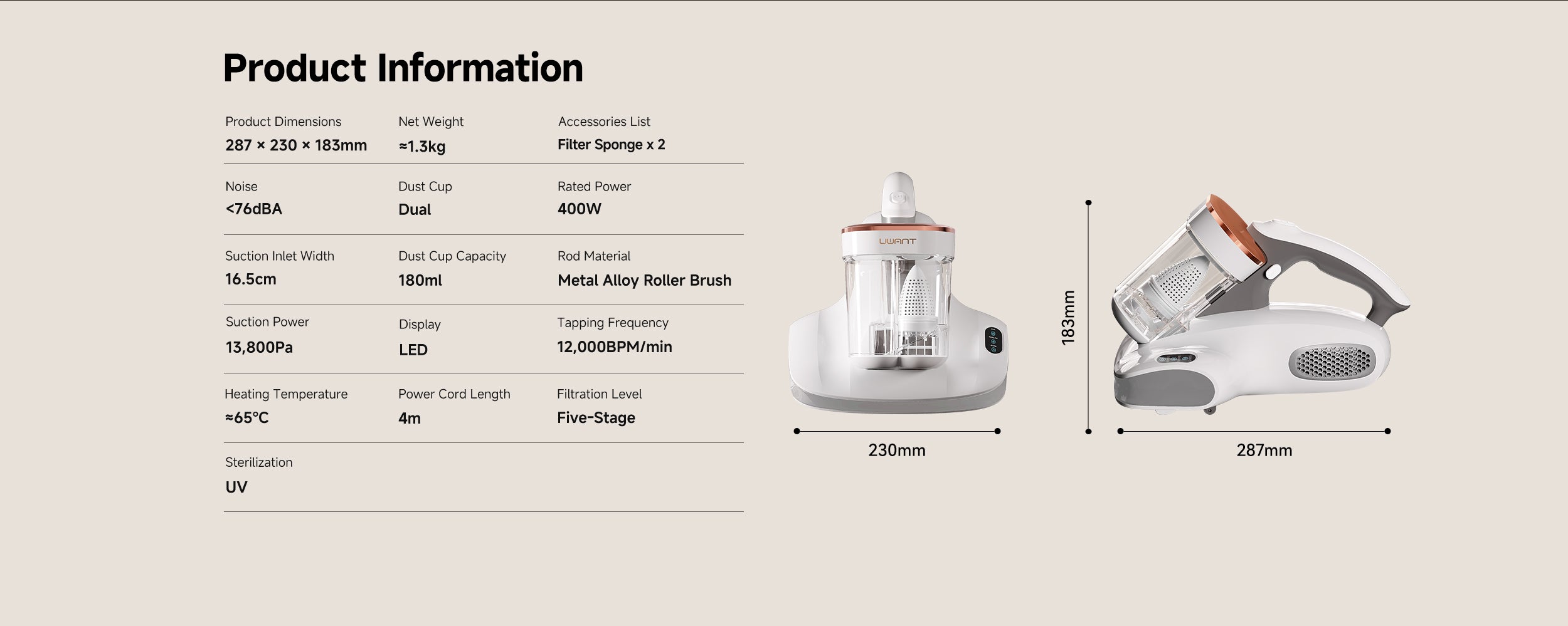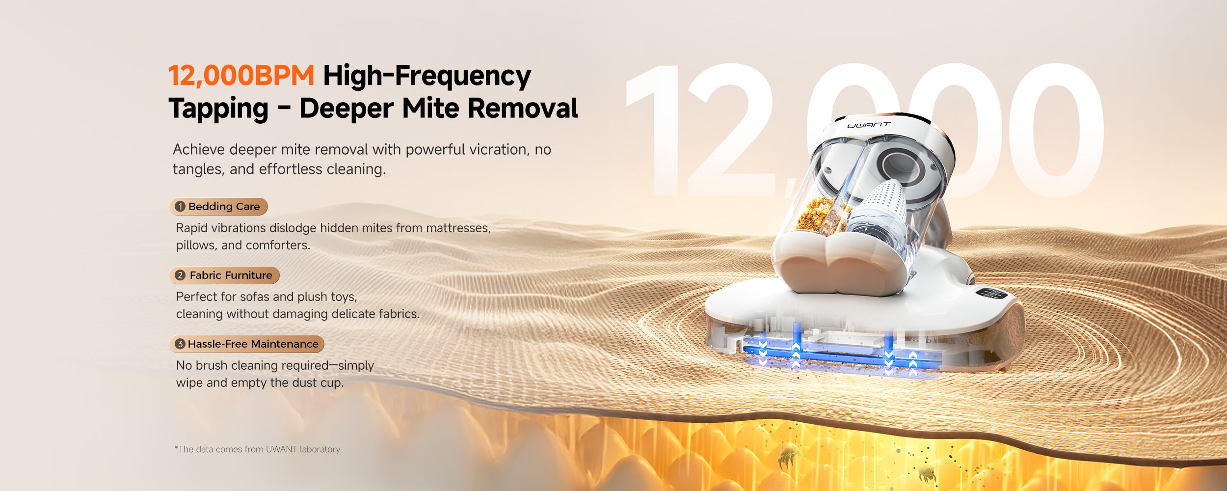 UWANT M400 is an ultra-light Mattress Vacuum designed for effortless, everyday cleaning. Weighing only 1.3kg, it is easy to carry, maneuver, and store, while delivering powerful suction and UV sterilization to remove dust mites, allergens, and hidden debris from mattresses, bedding, and upholstery. Compact yet effective, the M400 keeps your home clean and hygienic with minimal effort.