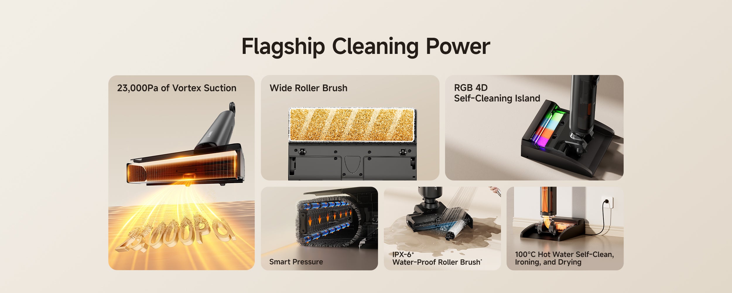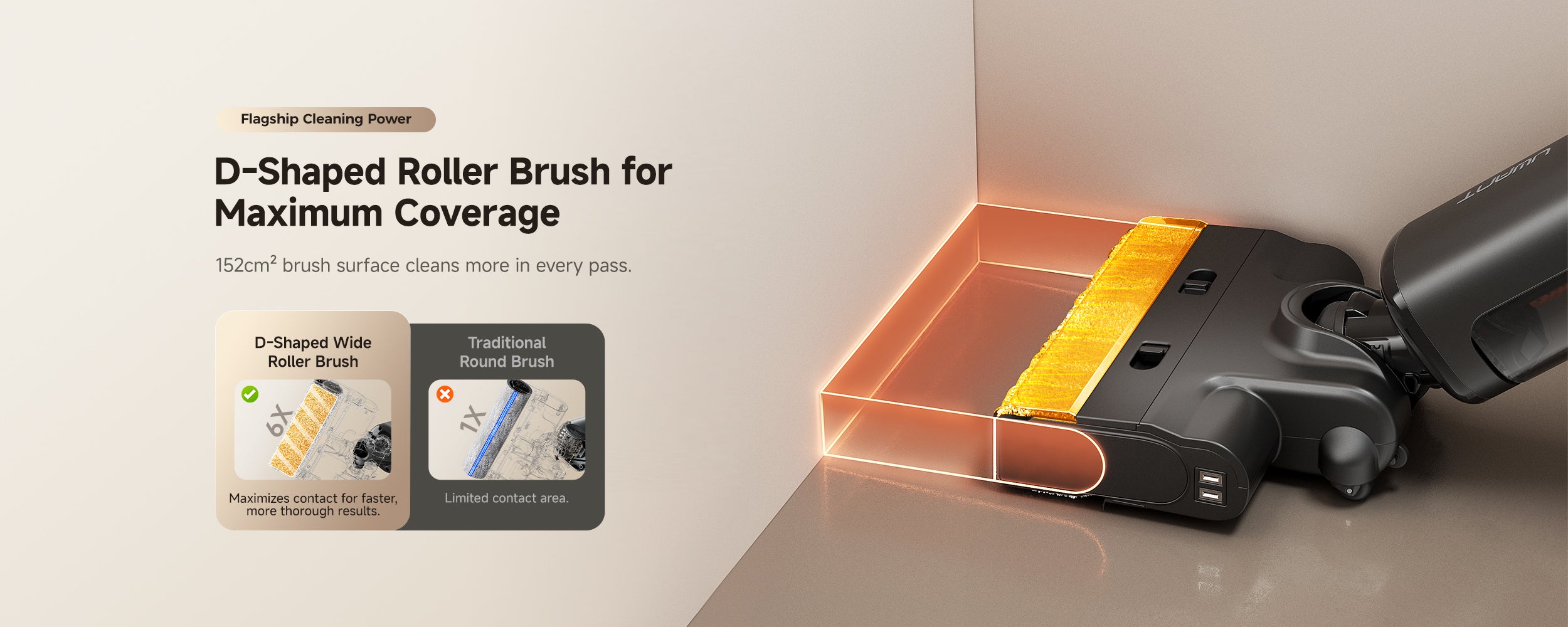 UWANT D700 Pro Wet Dry Vacuum Cleaner is a next-generation cleaning tool designed for ultimate edge-to-edge performance. Featuring a unique D-shaped brush head, it easily reaches corners and edges that round brushes often miss. With powerful suction, intelligent cleaning modes, and an upgraded self-cleaning system, the D700 Pro delivers a faster, deeper, and more precise clean for every surface in your home.