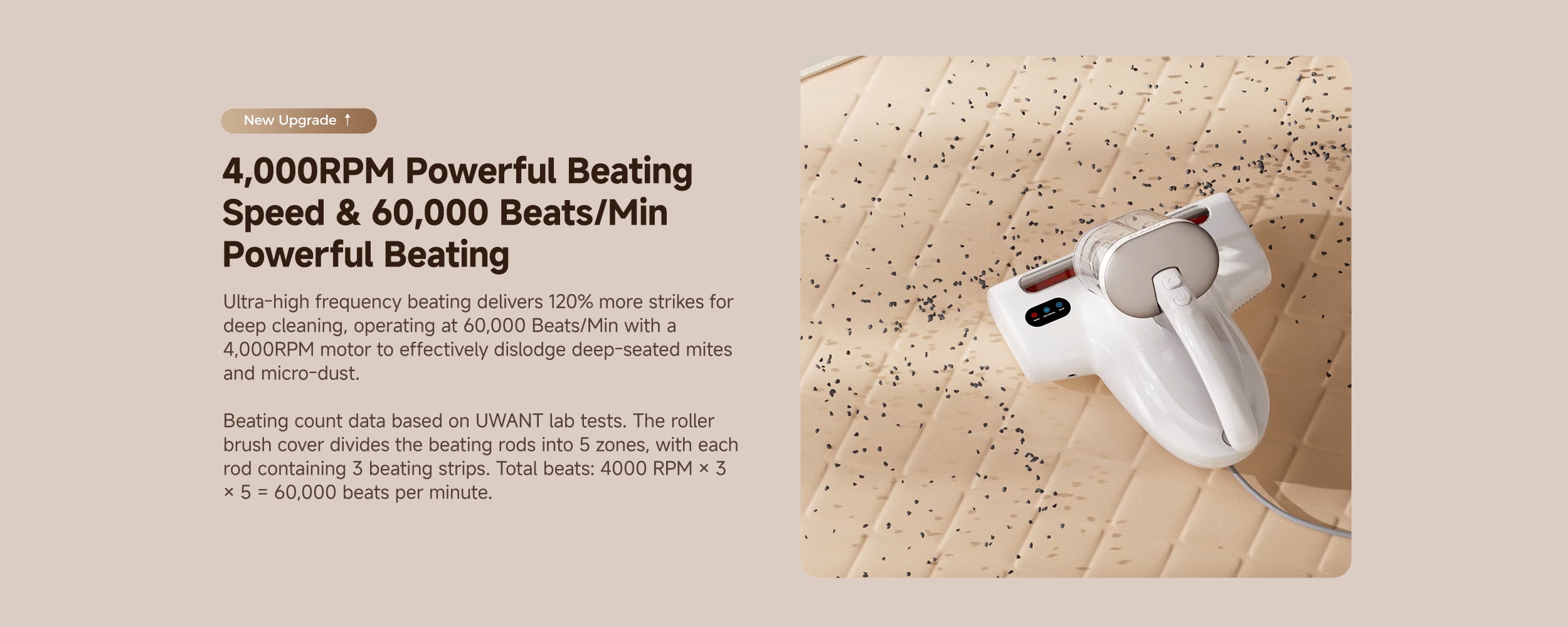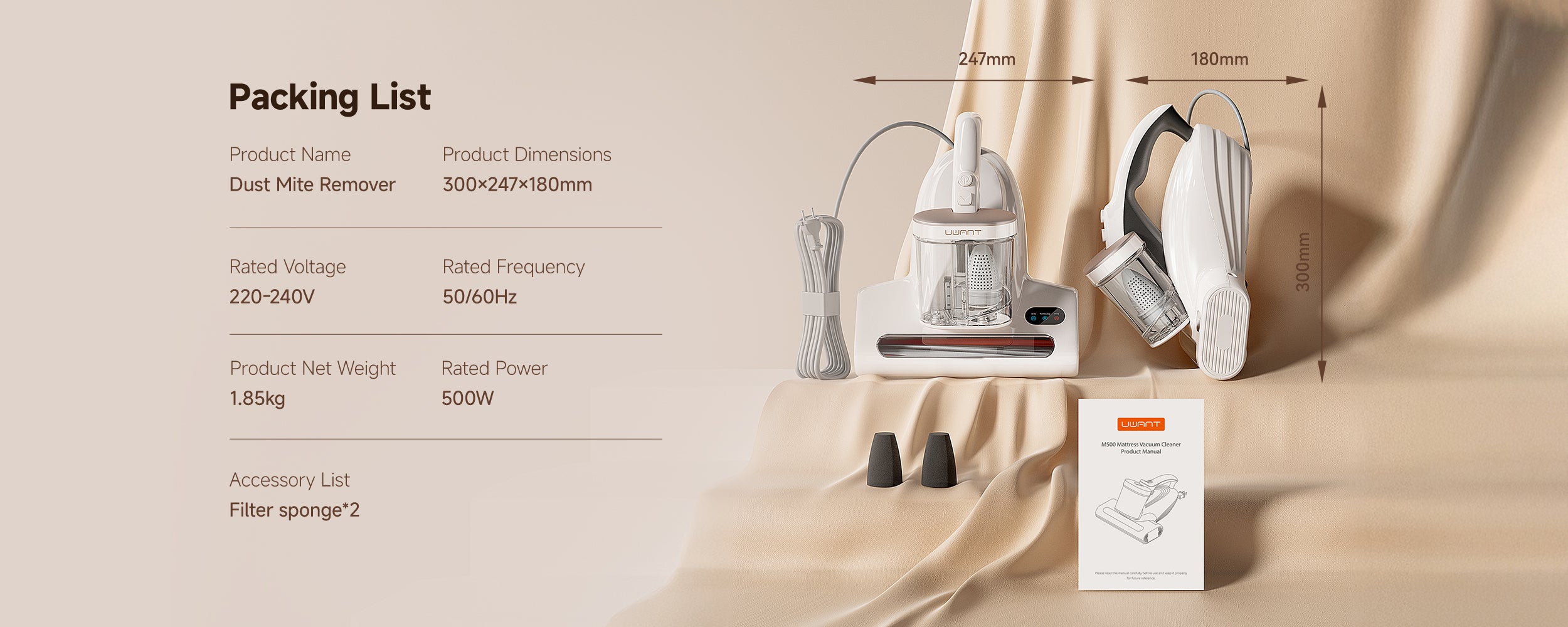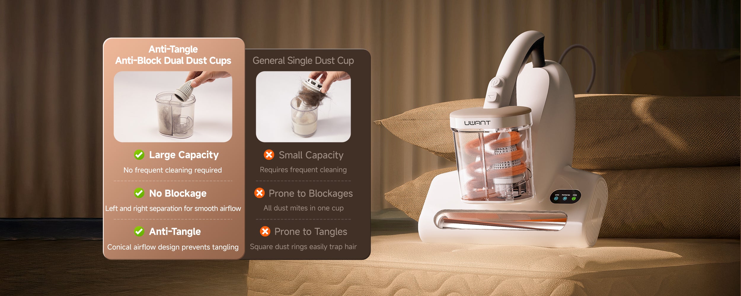 UWANT M600 UV Dust-Mite Vacuum is an upgraded essential cleaning tool for any home, designed to effectively eliminate dust mites and allergens from your bedding, upholstery, and other surfaces. Building upon the success of the M500, this innovative vacuum features enhanced powerful suction, an improved UV sterilization system, and a variety of attachments, making it ideal for creating a healthy and allergy-free environment for you and your family.