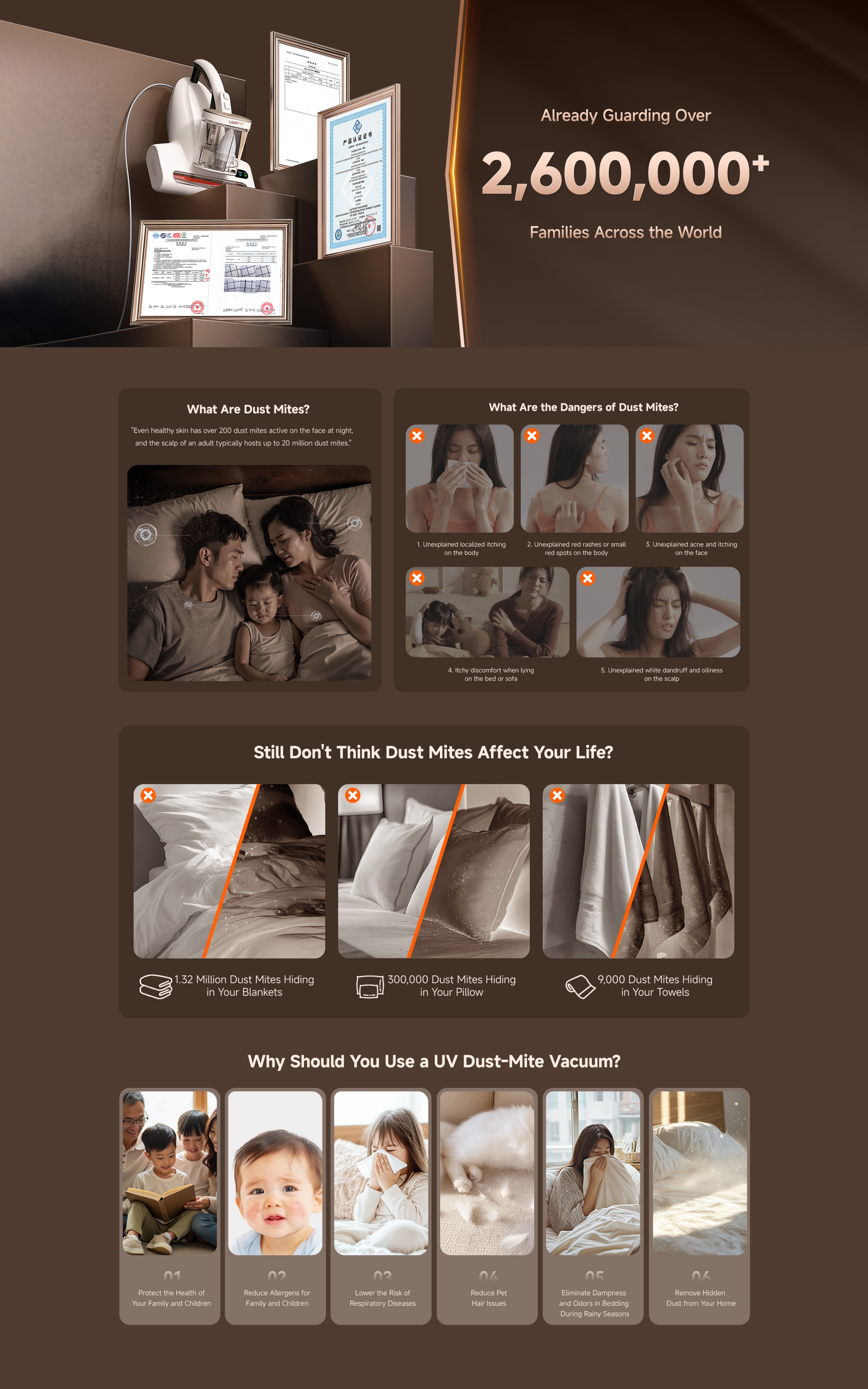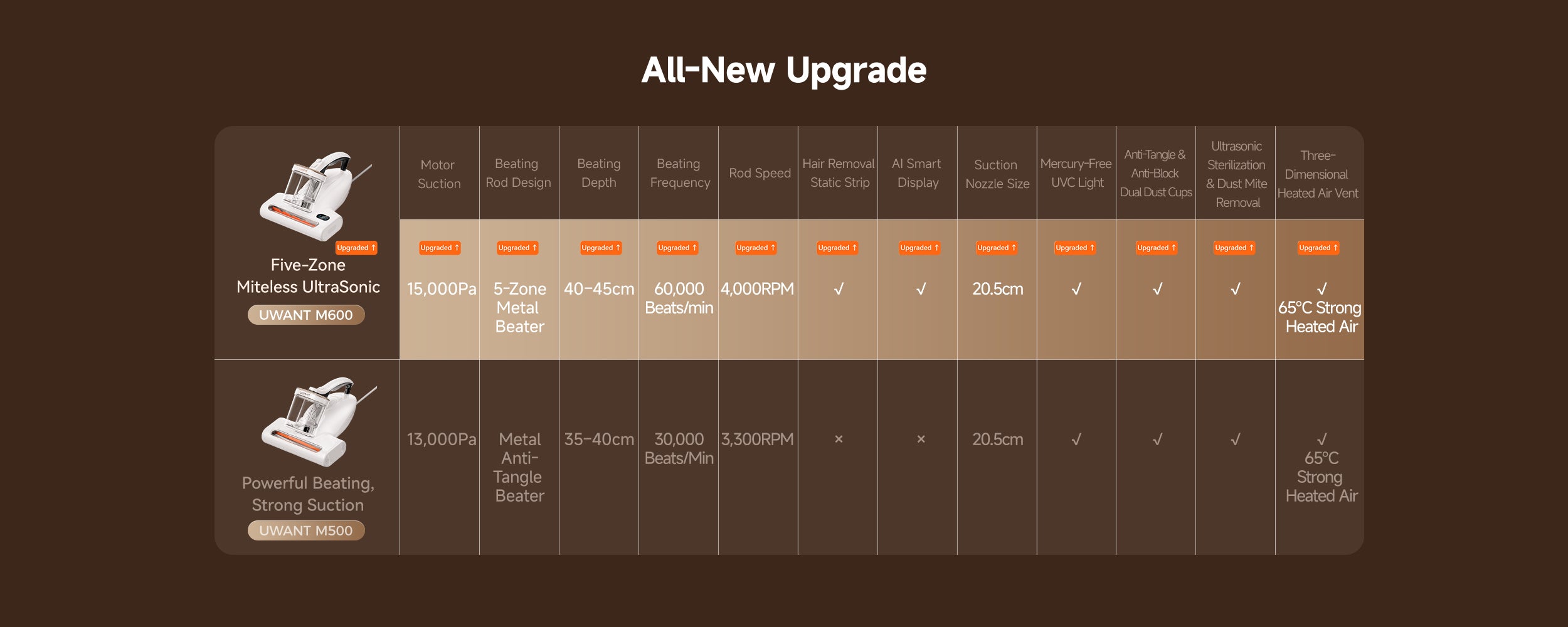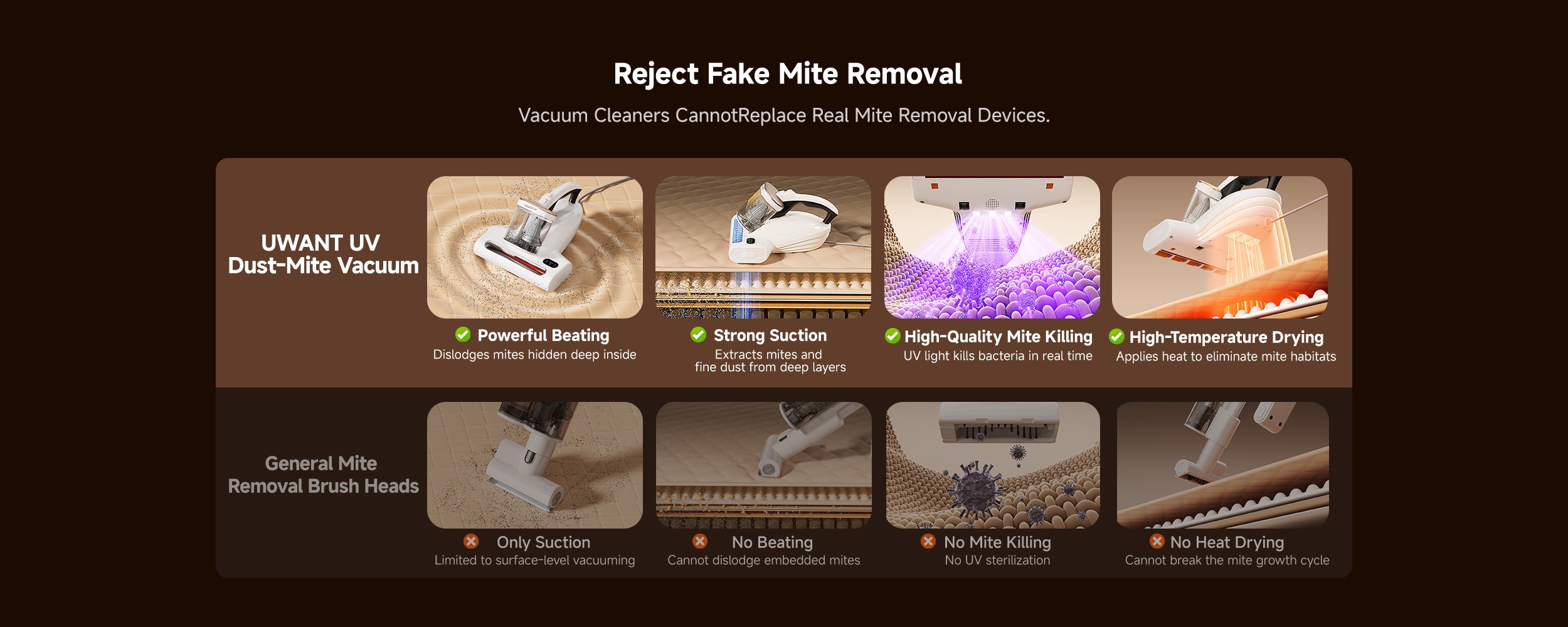 UWANT M600 UV Dust-Mite Vacuum is an upgraded essential cleaning tool for any home, designed to effectively eliminate dust mites and allergens from your bedding, upholstery, and other surfaces. Building upon the success of the M500, this innovative vacuum features enhanced powerful suction, an improved UV sterilization system, and a variety of attachments, making it ideal for creating a healthy and allergy-free environment for you and your family.