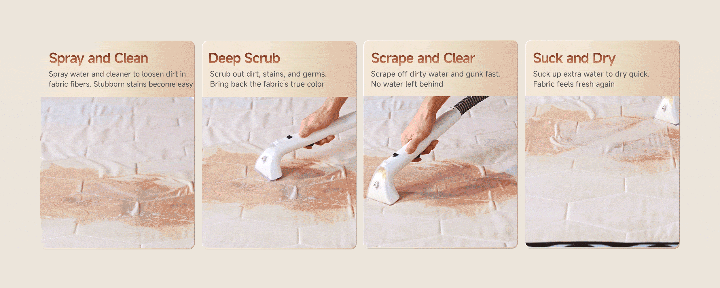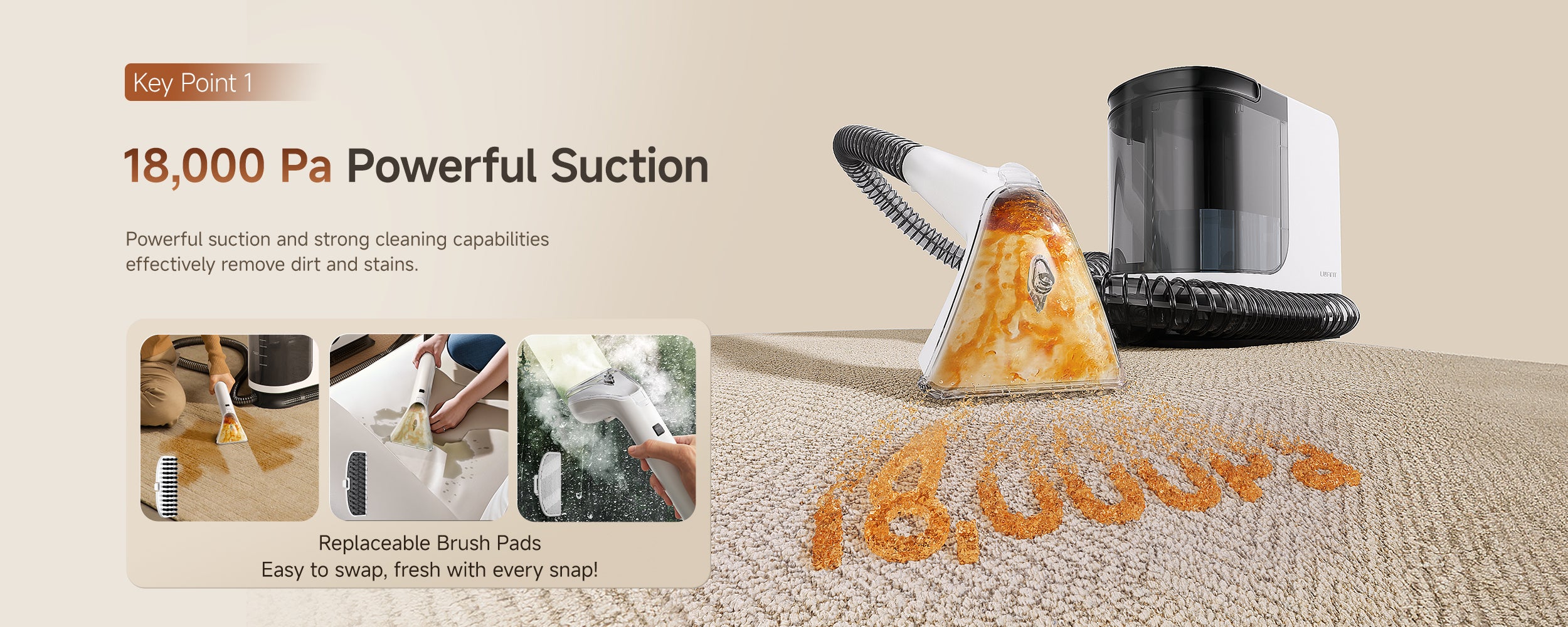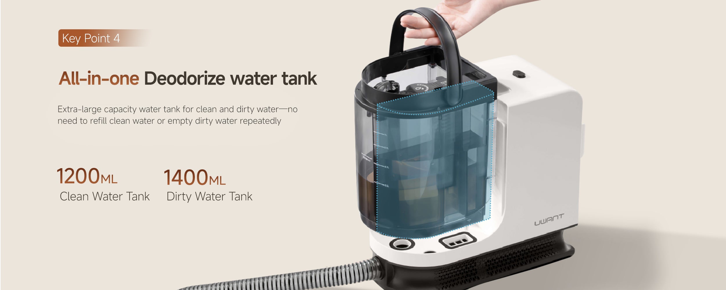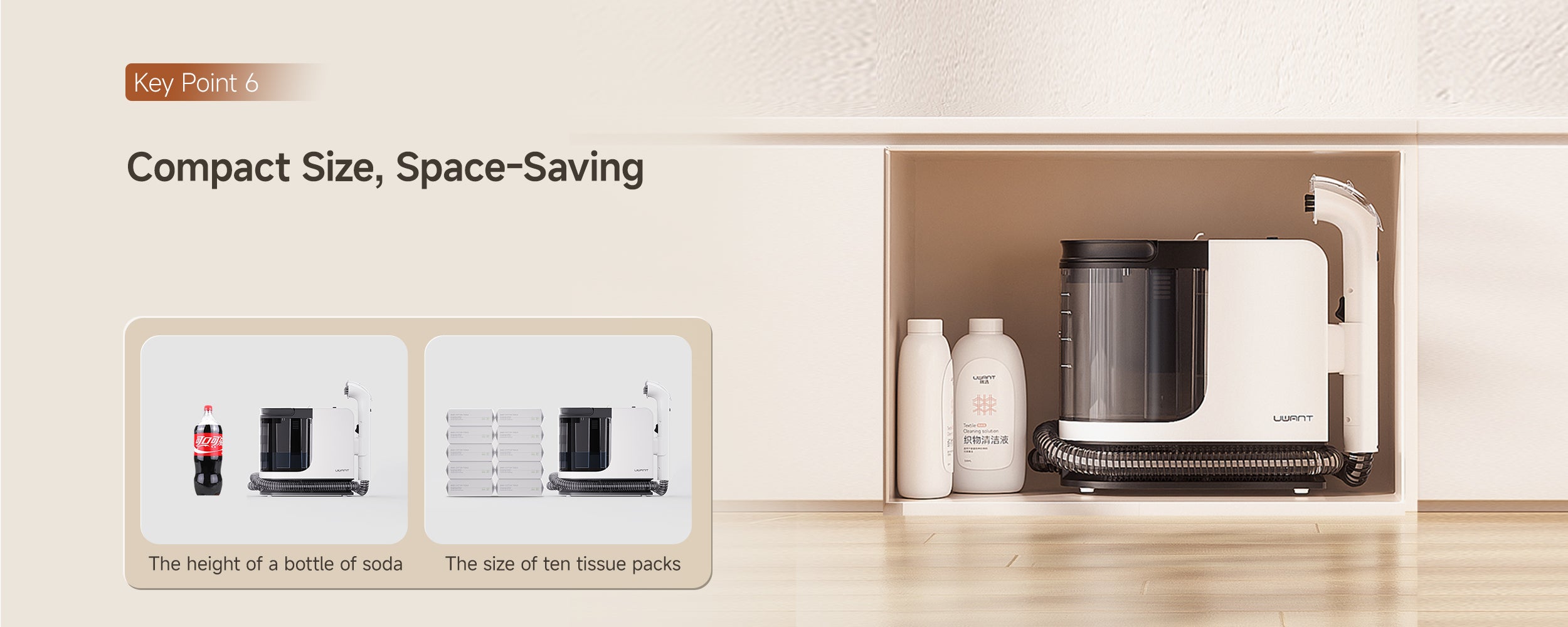 The Uwant Y200 is a lightweight yet powerful Spot Cleaner designed for quick, deep, and effortless stain removal. Delivering 18,000Pa strong suction, it lifts embedded dirt from sofas, mattresses, car seats, and upholstery with ease. Its self-cleaning system and integrated clean & dirty water tank simplify maintenance, while the ultra-light 3.76kg body makes it easy to carry and maneuver anywhere. A compact solution for spotless living.